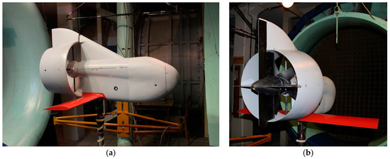 Another concept discussed above is propulsion with a ducted fan, as shown in Figure 21. Wind tunnel tests were performed for the airplane with this new propulsion, and additionally for the propulsion unit separately to check its performance without the airframe.