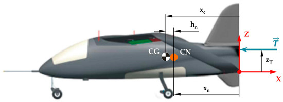 Above we have considered several possible modifications to improve the performance of the joined wing demonstrator which we actually tested. However, any and every change needs to be made with special care to keep the airplane’s stability and handling properties at a suitable level. Figure 12 explains the convention of the axis system used to define the CG position, neutral point of stability (CN) position, and thrust vector (T) position used in this paper. It is worth mentioning that positive elevator deflection δH is down deflection and corresponds to the nose pitching down effect.