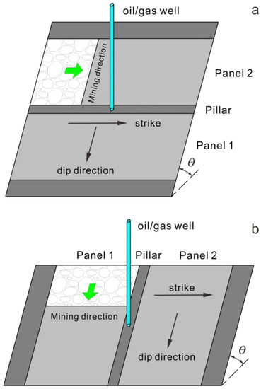 The success of horizontal drilling and hydraulic fracturing in tapping deep shale gas reservoirs has resulted in the need for wells to successfully transit coal seams that may ultimately be mined. To successfully maintain the yield of the wells that act as the conduits for the transmission of hydrocarbon resources from the underground reservoir to the surface, it is critical to ensuring the stability and security of these hydrocarbon wells during their service life. However, in some sedimentary basins where coal, gas and oil coexist, such as the Ordos basin, China, and the Appalachian Basin, in the United States, ensuring the stability of wells traversing coal seams is becoming a daunting challenge, adversely impeding the simultaneous recovery of coal and hydrocarbon resources [1,2,3,4,5,6,7,8]. The extensive and intense strata movement and deformation induced by longwall coal mining may result in large deformations and potential failure of the hydrocarbon wells. If the wells are improperly designed, longwall-mining-induced wellbore deformation or failure could have a significant adverse impact on well yield, or even in worse cases, resulting in the entrance of oil/gas into the aquifer, polluting ground water [9,10]. Moreover, the fugitive hydrocarbon gas could enter into the adjacent coal faces, triggering catastrophes like gas explosion and mine conflagration [11,12]. All of these severely endanger mine safety and the local ecological, geological, and environmental systems. For example, on 29 April 2006, a gas explosion accident occurred at the Wayaobao colliery located in the Zichang oilfield in China, as a result of the uncovering of an unknown abandoned gas well using blast mining. This tragic incident caused 32 deaths and seven injuries, with an immediate economic loss of 1.5 million US dollars. Therefore, it is of critical importance to guarantee the integrity of hydrocarbon wells piercing longwall mining areas to ensure the safe simultaneous extraction of coal and hydrocarbon resources.