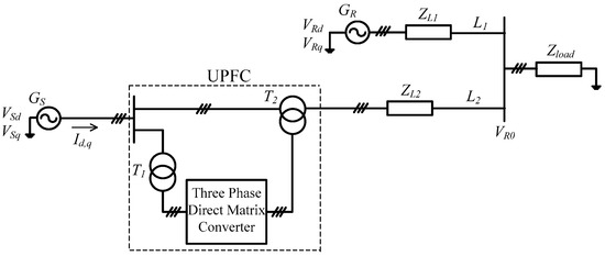 The proposed power system model of the DMC operating as a UPFC is presented in the simplified scheme of Figure 1.