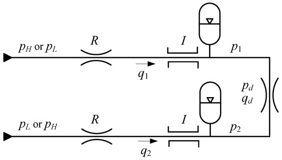 The laminar dynamic flow rate q1 and q2 can be calculated using the lumped parameter model, as shown in Equations (3) and (4) [19]: