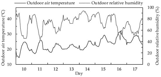 To consider the worst probable weather situation, the data for 10–17 June were employed in our study, as these days represent the high humidity season in Tokyo. During the rainy season, although the external humidity increases significantly, the temperature of the internal environment remains lower than that of the external environment. This is because the influence of solar radiation is insignificant as the sky is always overcast. Therefore, the risk of internal condensation during this period is expected to increase significantly.