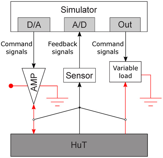 HIL operates with real components in connection with real-time simulated ones [44]; the real components tested with HIL are named “Hardware-under-Test (HuT)” [45]. The classification within HIL simulation answers to the specific type of HuT. Consequently, one can find “control-prototyping” HIL simulations, “product in-the-loop”, and so on.