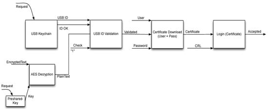 - USB ID validation: In order to carry out the USB dongle verification and to assess whether it is valid or not, a module has been defined. It checks a list (AES (advanced encryption standard) encrypted) of revoked IDs to accept or deny the device.
