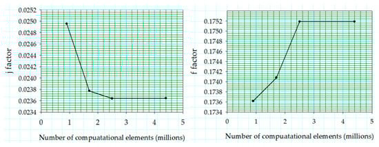 The thermophysical properties of a three-dimensional steady-state model with air as fluid and aluminium as solid material are as follows. Air was used as an ideal gas and its thermal properties were calculated at the arithmetic mean air temperature within the computational domain. The air viscosity is calculated from the Sutherland Equation. Thermal conductivity of aluminium is 202.4 W/mK.