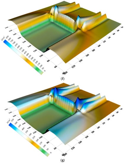 - When the roof-controlled backfill ratios are 40% and 60%, the backfill does not affect the energy distribution in front of the working panel, and the strain energy remains concentrated within 45 m of the front surface of the coal walls in the working panel. The maximum strain energies are 1440 kJ/m3 and 1420 kJ/m3, which are similar to those found when using the caving method.