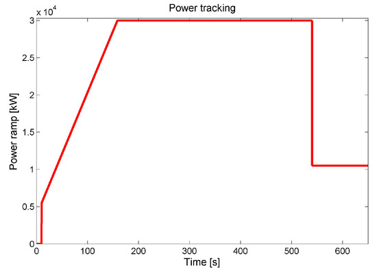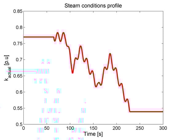 - Perturbed conditions with an unexpected variation of the actual conditions of the steam (as depicted in Figure 20), which causes a gradual power reduction of turbines of about 30% during the tracking of power reference.