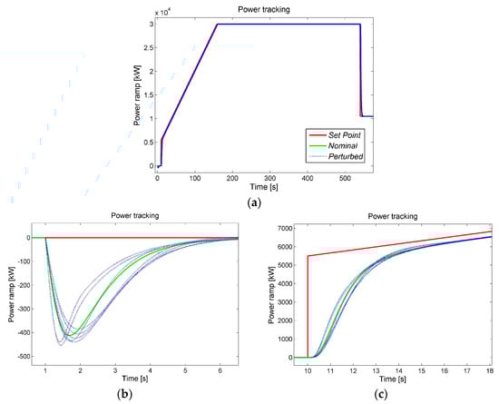 - Perturbed conditions with a variation in steam conditions causing a 30% power reduction of turbines, a sensor dynamic slower of about 50% and added power losses of about 50% with respect to the nominal case, when the typical power ramp is demanded to the system.
