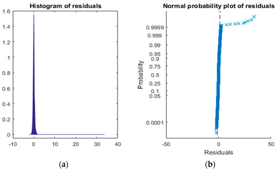 Plot of residuals for the linear model after the removal of outliers. (a) Histogram. (b) Normal Probability.
