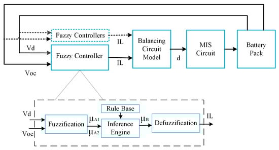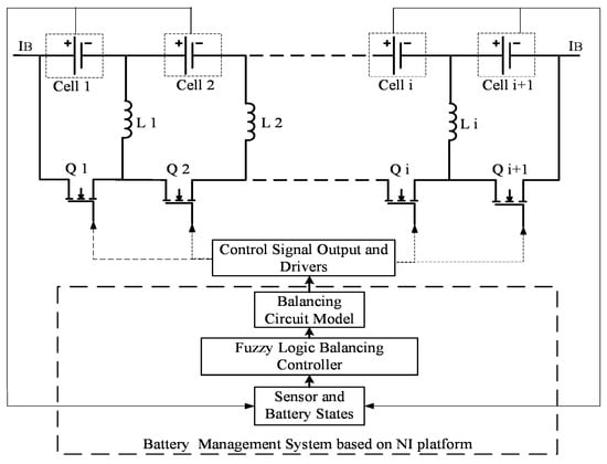 Figure 1 shows a MSIBC-based balancing system [25]. It mainly consists of a MSIBC and a FL controller. The MISBC is operated in different modes. In each mode, one cell is disconnected from the BC. The mode duration, namely, the MOSFET off-state duration, affects the direction and amplitude of the balancing currents. The FL controller is implemented in the National Instruments (NI) data acquisition platform and the FPGA module. The membership functions of the FL controller are designed based on the characteristics of both the balancing circuit and the battery cell.