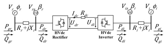 4]. The amplitude and the phase angle of the voltage drop across the impedances of the interfacing transformers are modified with the active and reactive power flows. Finally, the active power flowing through the HVdc link can be calculated knowing the DC voltage at each HVdc side,