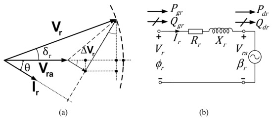 However, the reactive power Qgr flows from the OWF to the rectifier when the amplitude of the AC voltage phasor Vr is larger than the VSC output fundamental AC voltage phasor Vra for a relatively small δr. Therefore, the reactive power supplied or absorbed, Qdr, by the rectifier is modified by adjusting the amplitudes of the VSC output fundamental AC voltage (Vra).