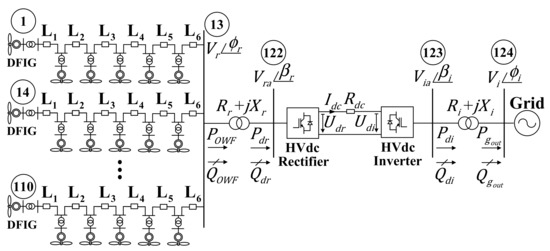 Figure 3). It must be stressed that, in the present operation, the active power flow is always from the OWF to the external grid, which simplifies the operational modes of the HVdc.