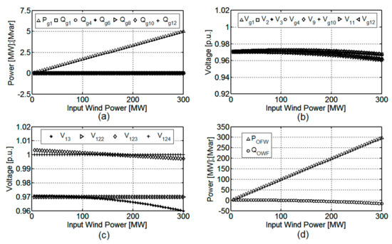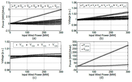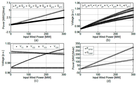 Figure 10a, the reactive power is fixed in each DFIG to achieve the objective function, i.e., to minimize the power losses in the overall OWF-HVdc system.