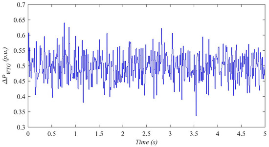 As aforementioned in Section 4.1, the simulations in this section are also based on the model depicted in Figure 8. The controller structure and parameters are following Figure 4 and Figure 5 and Table 4, Table 5 and Table 6. However, this case considers the stochastic characteristic of wind power and load demand.
