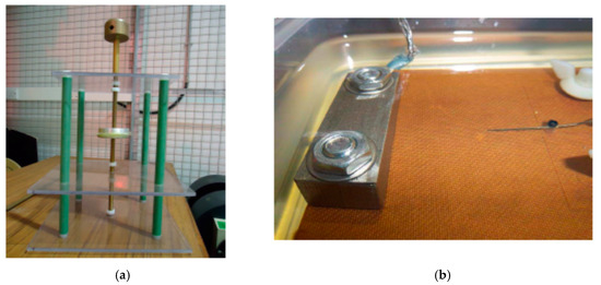 Photograph of the test set-up for (a) voids; and (b) surface discharge in oil.