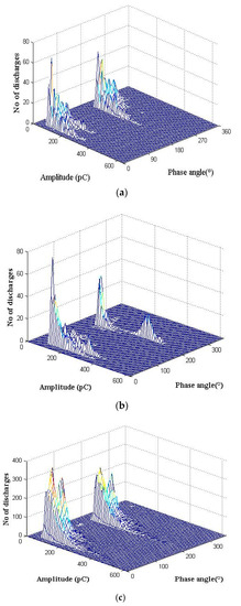 Sample PRPD pattern for: (a) void 1; (b) void 2; and (c) void 3.