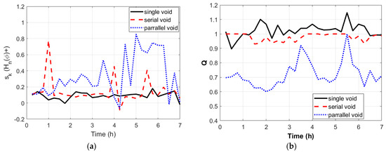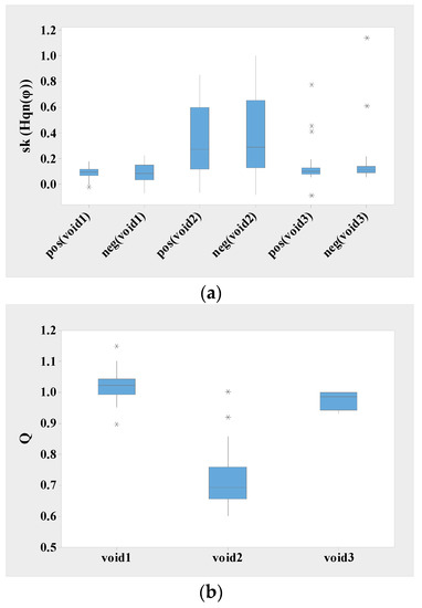Statistical variation of single void (void 1), serial void (void 2) and parallel void (void 3) (a) sk (Hqn(φ)+) and (b) Q.