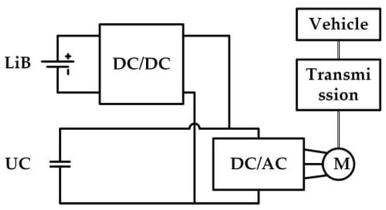 - Ostadi, A.; Kazerani, M.; Chen, S.K. Hybrid Energy Storage System (HESS) in Vehicular Applications: A Review on Interfacing Battery and Ultra-capacitor Units. In Proceedings of the 2013 IEEE Transportation Electrification Conference and Expo, Detroit, MI, USA, 16–19 June 2013; pp. 1–7. [Google Scholar]