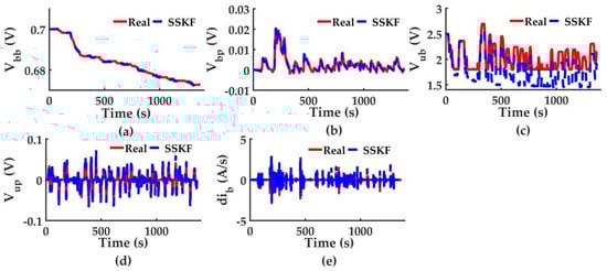 States values estimated by SSKF of SMPC. (a) Vbb estimation; (b) Vbp estimation; (c)Vub estimation; (d) Vup estimation; (e) ∆ib estimation.