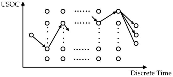 The DP process is shown in Figure 9. Forward iteration calculation is conducted. LiB Ah-throughput from the initial USOC point to different end USOC points are calculated, and the minimal solution as well as corresponding USOC path are recorded. Due to USOC discretization and model simplification, there is slight deviation between the DP result and real optimum value of the semi-active structure. Yet, considering that more accurate computation companies with much heavier computation burden and this result is accurate enough, it is adopted as comparison.