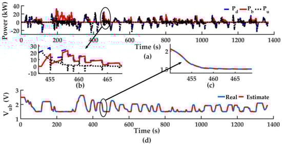 QP solver receives states for calculation, as shown in Equation (26). As HESS states can’t be measured directly, a state estimator is needed. Currents and terminal voltages of LiB and UC are related to all four states to be estimated, and they are all measured variables. By gathering voltage and current signals, the HESS observability is guaranteed.