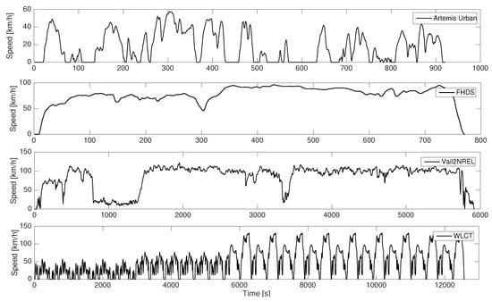 Driving cycles speed traces.