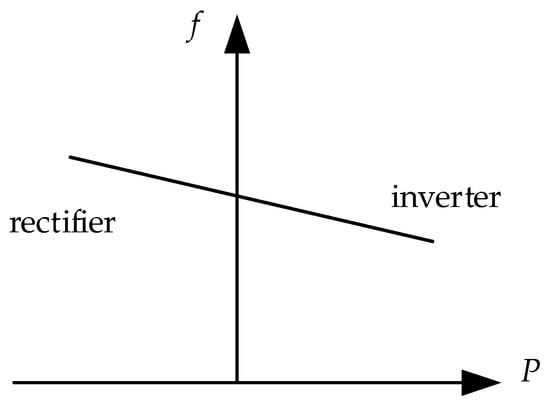 If the inverter acts as a power supplier in the AC side. It should be operated by the frequency and active power droop control to provide a primary frequency control function for the AC system. From the view of the rectifier side, it acts as a load of the AC-side. The control characteristic is that the frequency and active power are in a positive correlation. Therefore, the ideal control characteristic of the active power and frequency is shown in Figure 5.