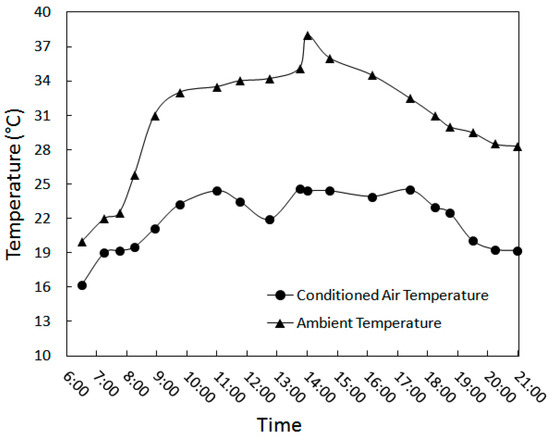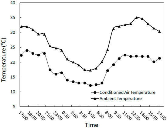 Note that the minimum data were measured at midnight. As a result, the experimental and analytical results illustrate that the average air temperature entering the room was approximately 21 °C when the average ambient air temperature was 30.3 °C. In other words, the modular wind tower can significantly decrease the air temperature entering the room.