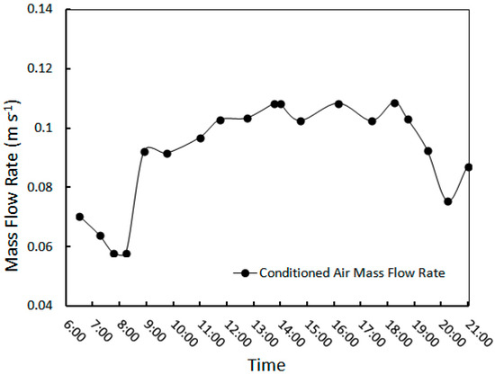 The mass flow rate entering the room was calculated using the following relation: