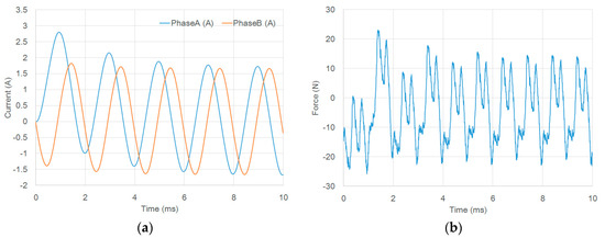 The machine FEM simulations (a) phase current outputs and (b) electromagnetic force.