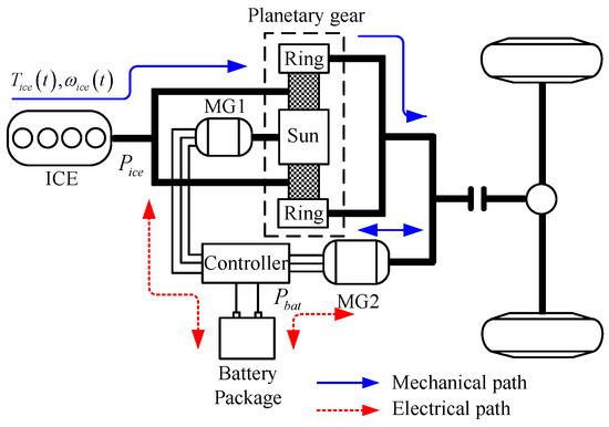 - Chen, L.; Zhu, F.; Zhang, M.; Huo, Y.; Yin, C.; Peng, H. Design and analysis of an electrical variable transmission for a series–parallel hybrid electric vehicle. IEEE Trans. Veh. Technol. 2011, 60, 2354–2363. [Google Scholar] [CrossRef]
