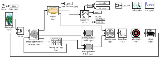 - Liu, D.X.; Zou, Y.; Liu, T. Modeling and control for the Toyota Prius under consideration of emissions reduction. In Proceedings of the IEEE Transportation Electrification Conference and Expo 2014, Beijing, China, 31 August–3 September 2014; pp. 1–5. [Google Scholar]