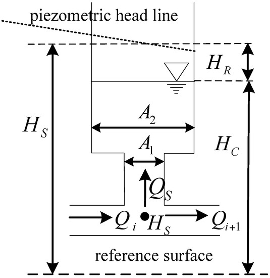 where H S , Q S are the surge tank bottom pressure and flow, A 1 is the area of the impedance orifice, H C , A 2 are the elevation and area of the surge tank, K R is the bottom orifice flow loss coefficient.
