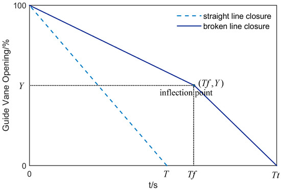 where Δ Y and Y _ max are change value and rated maximum value guide vane opening, t is the guide vane closing time, and T r is the minimum closing time limit.