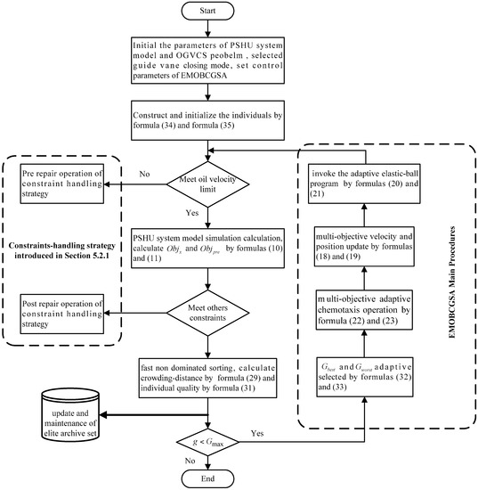 Figure 7. The flowchart of EMOBCGSA for solving OGVCS problem.