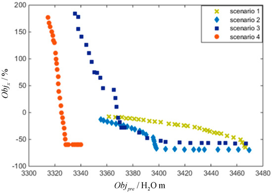 Figure 11. The Pareto front obtained of EMOBCGSA by different scenarios under pump outage conditions.