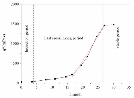 - The complex viscosity in relationship with frequency is drawn to reflect the reaction process of polymer and crosslinker. This process is further divided into three identical periods: induction period, fast crosslinking period, and stable period.