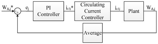 Equation (1) reveals that the DC component of the circulating current is responsible for exchanging active power between the converter legs, since the second term of (1) is zero in an STATCOM application. Based on this finding, a PI controller is introduced to provide the reference for the desired energy sum [35]. The reference is usually set by (2):