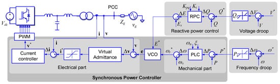 Figure 1 shows the cascaded control layers of the SPC-based grid-connected converters. The SPC mainly consists of the electrical part and the mechanical part, corresponding to the electrical and mechanical part of the synchronous generators.