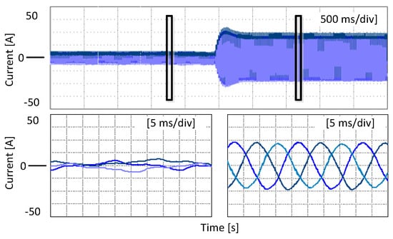 Figure 10 shows the current waveforms during the whole process. It is seen that no transient of current is found at the instant when the converter’s switching is enabled, and no oscillations of current are found during the admittance parameters changing and the active power step-up.