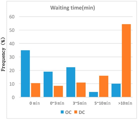 Average waiting time distribution comparison of ordered charging and disordered charging.