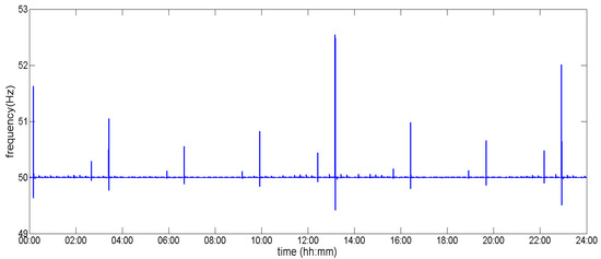 Frequency response during the 24 h simulation test with the use of adaptive FCC control.