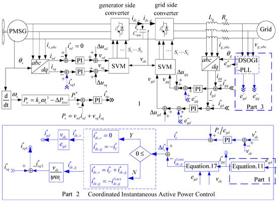 In the Figure 2, is divided into two parts: and . The DC-link regulator both uses the generator-side converter and grid-side converter to stabilize the DC-link voltage.