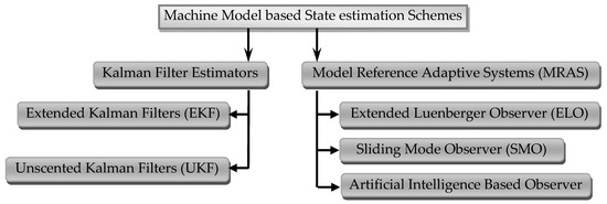 The speed was estimated from either the terminal quantities of the machine or from its rotor saliency. However, speed estimation from the machine model was easier to implement, occupied less computational space and were most effective. Considerable research over the past two decades focused primarily on sensorless control of induction motor [1], with special emphasis on estimation from the machine model [2]. The state estimation schemes are shown in Figure 2.