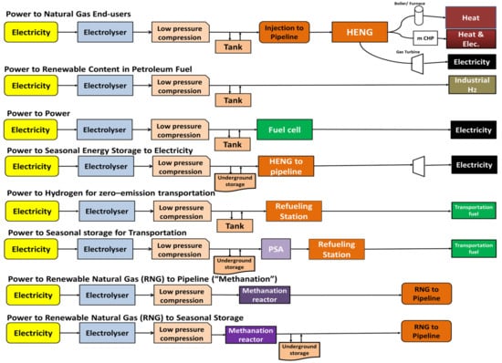 - Power to Hydrogen to Natural Gas End-users via hydrogen enriched natural gas (HENG);
