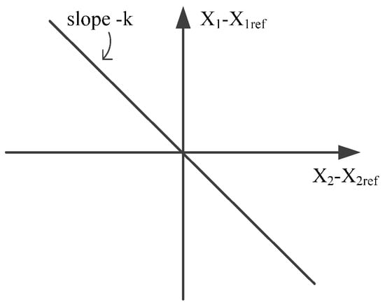 Equation (7) establishes a linear dependence between the two state variables x1 and x2, which can be represented as a straight line with slope-k, as shown in Figure 1. The system operating point converges to the straight line (the control manifold) and then moves along it to the origin (steady state).