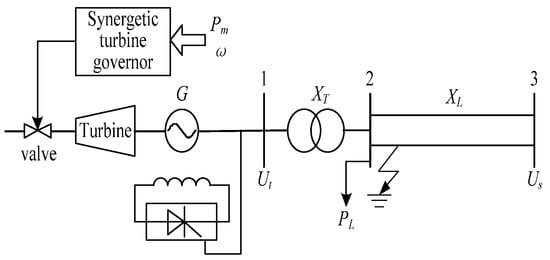 Single-machine infinite-bus power system with synergetic turbine governor.