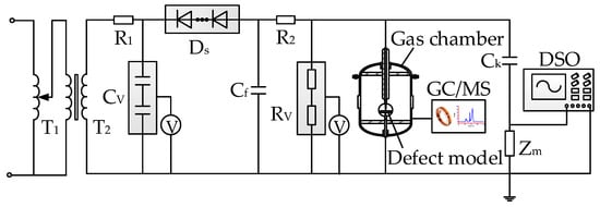 The experimental platform of SF6 decomposition under negative DC-PD is shown in Figure 1, which mainly includes four parts: the HVDC supply system, PD gas chamber, decomposed component detection system, and PD signal detection system.