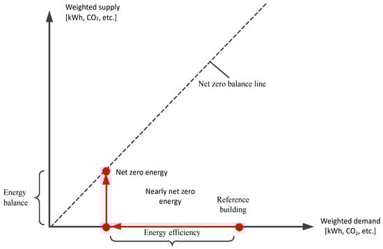 Figure 1. Graphical representation of nearly zero energy building (nZEB) balance concept.